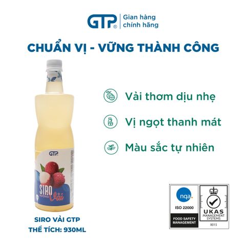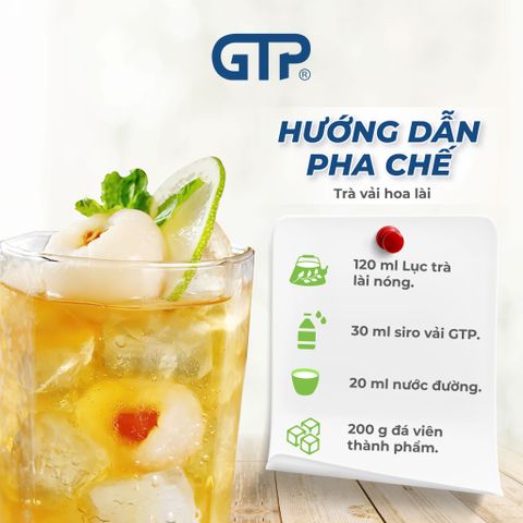 Sản xuất theo dây chuyền tự động đạt tiêu chuẩn chất lượng quốc tế + công thức đặc biệt giúp Siro Vải GTP có hương thơm tự nhiên, ngọt thanh không bị gắt.